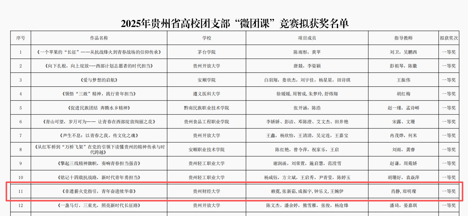 热烈祝贺公司2024级研究生团支部荣获2025年贵州省高校团支部“微团课”竞赛一等奖!