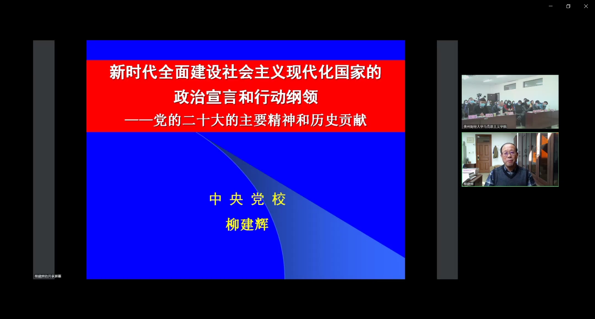 报告会暨研讨会尾声,柳建辉教授强调,要把学习宣传贯彻党的二十大精神作为当前和今后一个时期的首要政治任务,深刻领悟“两个确立”的决定性意义,切实把思想和行动统一到党的二十大确立的战略部署上来,要坚决扛起新时代新征程的使命任务,全面准确把握中国式现代化的中国特色和本质要求,深刻理解把握中国式现代化的战略策略,以踔厉奋发的担当奋力推进中国式现代化,全面推进中华民族伟大复兴,他说,总之,大会的主要精神和历史贡献,体现在大会的政治报告、有关决议、重要讲话中,其中最主要的是二十大报告。